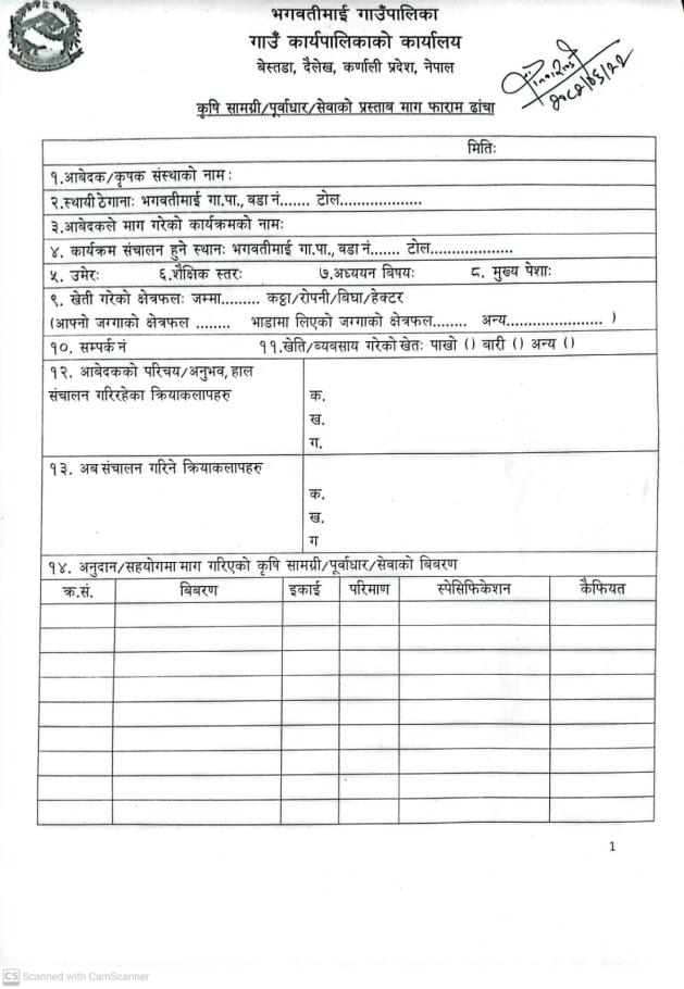कार्यक्रमका लागि आवेदन पेश गर्ने सम्वन्धमा ।