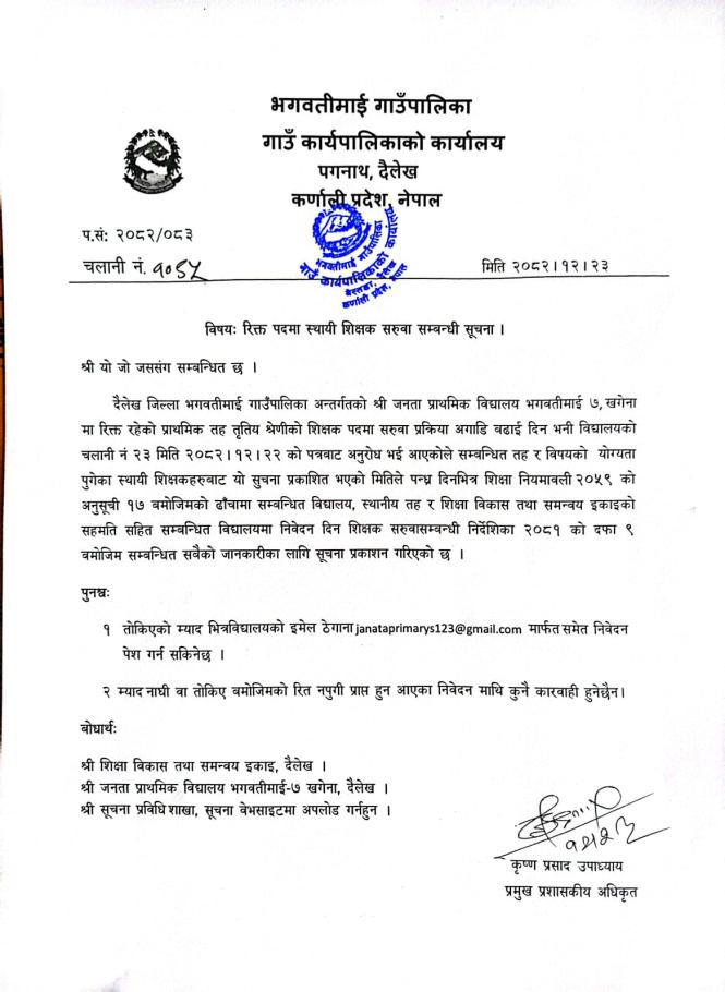 Home » रिक्त पदमा स्थायी शिक्षक सरुवा सम्बन्धी सूचना ।