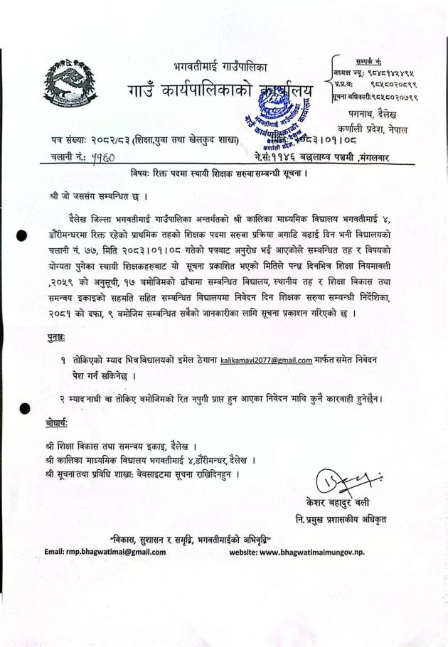 Home » रिक्त पदमा स्थायी शिक्षक सरुवा सम्बन्धी सूचना ।