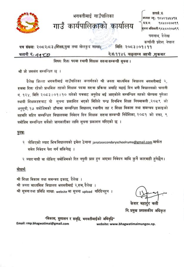 Home » रिक्त पदमा स्थायी शिक्षक सरुवा सम्बन्धी सूचना ।