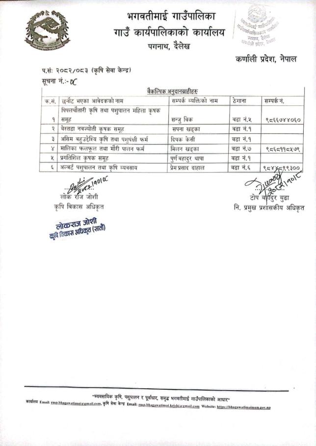 आलु बालीको नयाँ पकेट विकास कार्यक्रम संचालनमा अनुदानग्राही छनौट सम्बन्धि सूचना ।