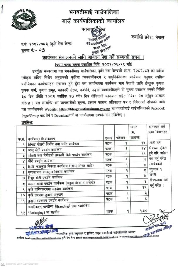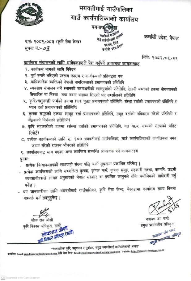 कार्यक्रमका लागि आवेदन पेश गर्ने सम्वन्धमा ।