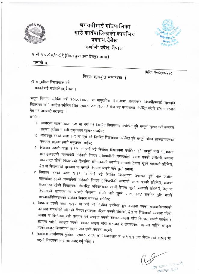 Home » छात्रवृ्त्ती सम्बन्धमा